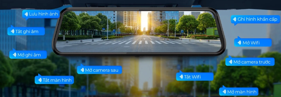 Vietmap R440 cho phép người lái điều khiển camera hoàn toàn bằng giọng nói tiếng Việt, giúp hạn chế thao tác tay khi đang di chuyển. Các câu lệnh đơn giản: