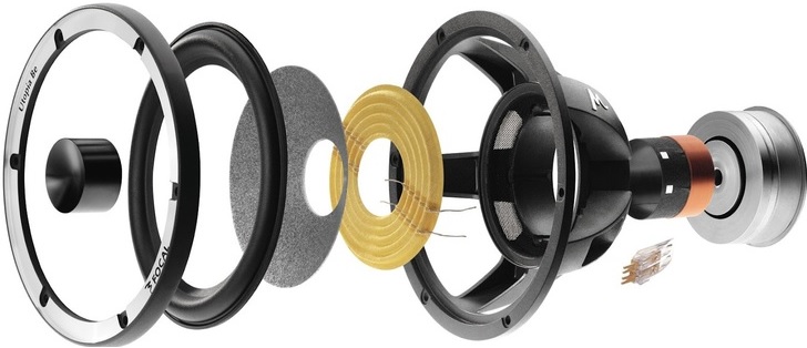 Màng loa W Sandwich Cone – cấu trúc 3 lớp độc quyền của Focal (sợi thủy tinh + foam + sợi thủy tinh) cho âm chính xác, cứng mà nhẹ |