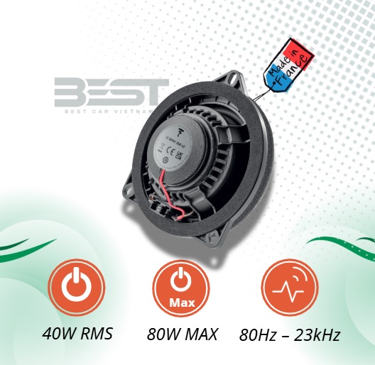 - Kéo tốt bằng ampli zin: Với độ nhạy 92.5 dB, công suất 40 W RMS (80 W max) và trở kháng 4 Ω, loa hoạt động hiệu quả ngay trên hệ thống nguyên bản BMW, không cần ampli mạnh.