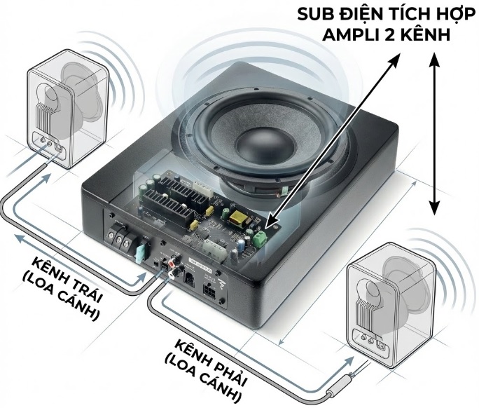 3.1 Sub điện tích hợp ampli 2 kênh trong cùng thân máy