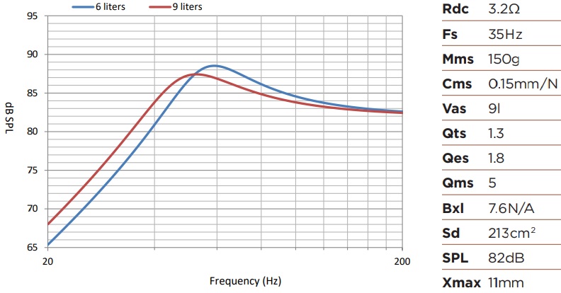 - Tần số cộng hưởng Fs: 35 Hz.