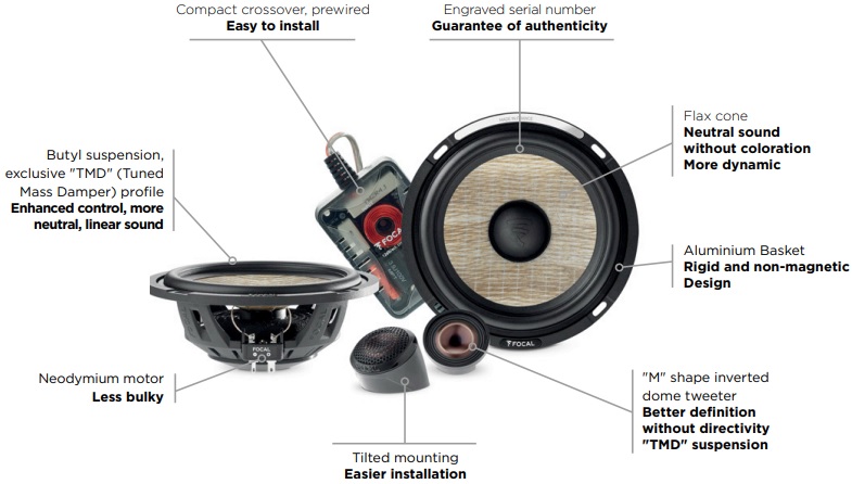 Bộ loa 2 way PS 165 FSE của Focal với khả năng đánh rõ từng nốt nhạc giúp tăng trải nghiệm âm thanh trên xe ô tô. Thừa hưởng công nghệ độc quyền DNA Focal, đồng thời sở hữu thiết kế mỏng với độ sâu lắp đặt vừa vặn trong cánh cửa xe là sự lựa chọn của nhiều khách hàng mê âm nhạc Hi-fi trên toàn thế giới. Giống như các sản phẩm khác trong dòng Flax Evo, PS 165 FSE kết hợp hài hòa giữa phong cách, sự tinh tế và tính hiện đại để tạo nên một hệ thống âm thanh cao cấp.