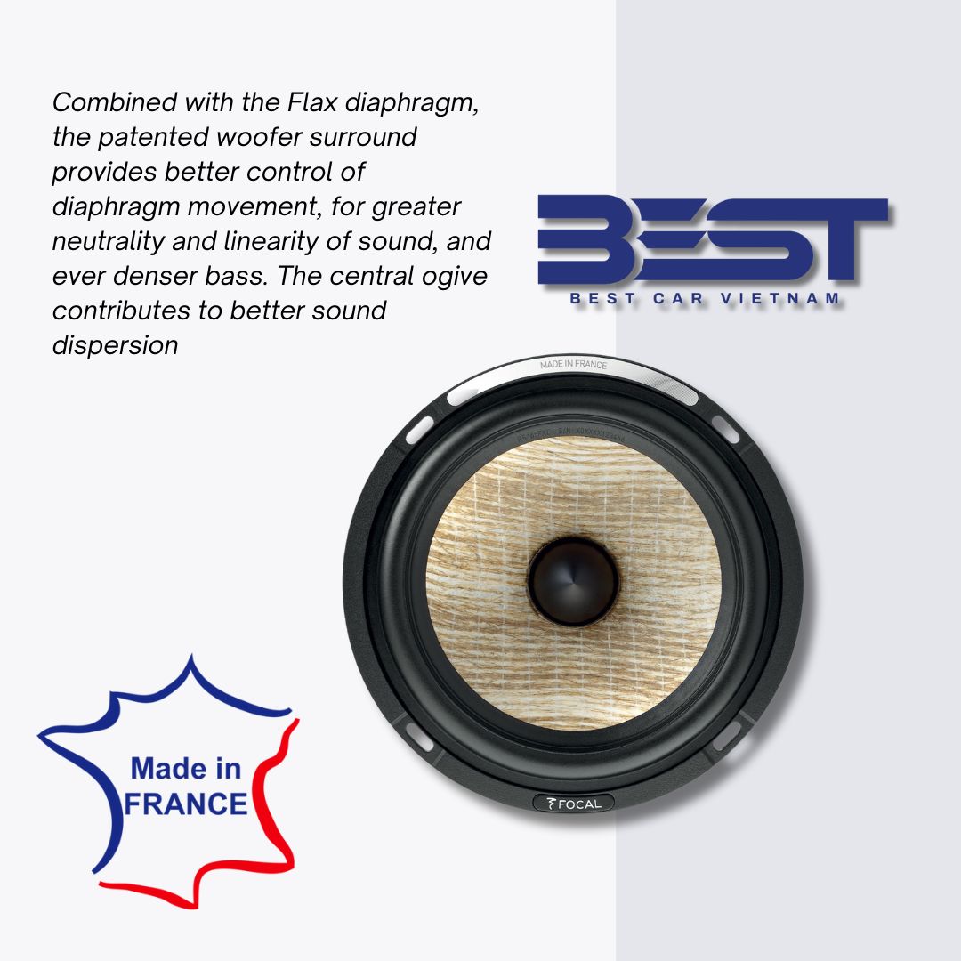 Focal PS 165 FXE là giải pháp chất lượng cao thay thế loa zin có công suất yếu, chất âm mờ nhạt. Được thiết kế lắp đặt vừa vặn ở cánh cửa xe với điểm nhấn là màng loa Flax sợi lanh tự nhiên tái tạo âm thanh chi tiết cùng với treble TAM mang lại không gian âm nhạc sống động cho chủ xe.